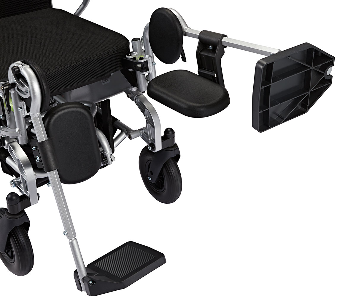 Lorsque vous devez vous lever du fauteuil roulant ou vous y asseoir , vous pouvez facilement rabattre les repose-jambes sur le côté. De plus, ils sont facilement détachables, ce qui rend le transport plus pratique ou vous permet de passer au repose-pieds standard d’Eloflex lorsque vous le souhaitez.