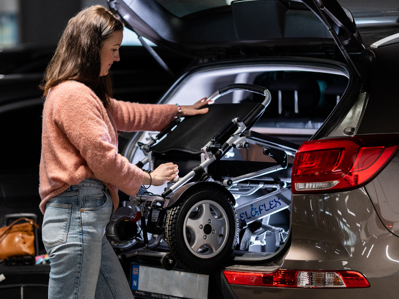 Eloflex s’adapte à tous les types de voitures. Vous pouvez désormais voyager avec un ami, prendre un taxi régulier ou louer une voiture sans vous soucier des tracas avec votre fauteuil roulant électrique. Son faible poids facilite son chargement dans votre propre voiture.