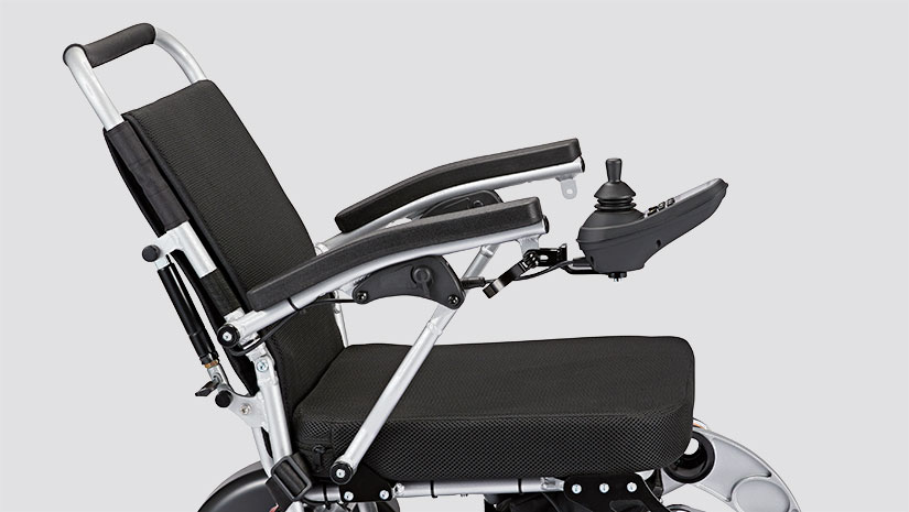 Une attention particulière a été portée à l’ergonomie et à la convivialité. Le support du joystick intelligent se replie, vous permettant de vous rapprocher du bord de la table, et le repose-pieds se range soigneusement lorsque vous êtes assis ou debout. Les grandes roues arrière gonflées à l’air et les amortisseurs à ressort de l’essieu avant absorbent parfaitement les chocs, même sur des surfaces irrégulières.