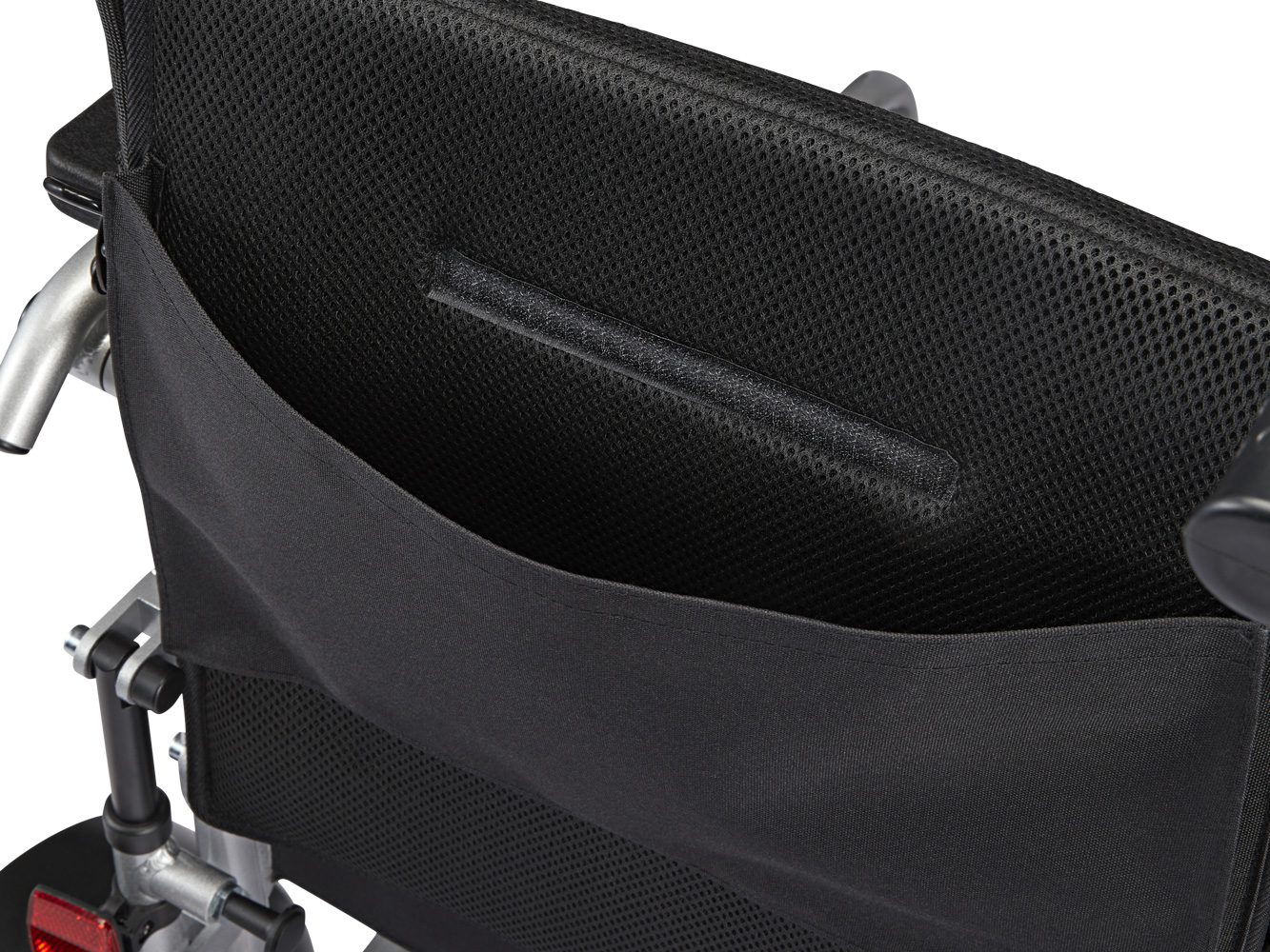 Situées derrière le dossier, les poignées de poussée classiques des fauteuils roulants permettent à un membre de la famille ou à un soignant de pousser le fauteuil manuellement. Elles offrent également un excellent soutien si les utilisateurs souhaitent utiliser leur fauteuil roulant électrique comme déambulateur sur de courtes distances.