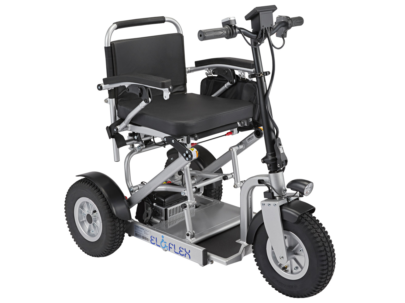Das Geheimnis liegt in der Tatsache, dass ein Eloflex Elektrorollstuhl bis zu 80 % weniger wiegt als ein Standard-Elektrorollstuhl. Darüber hinaus lässt er sich mit einem einfachen Handgriff zusammenklappen.