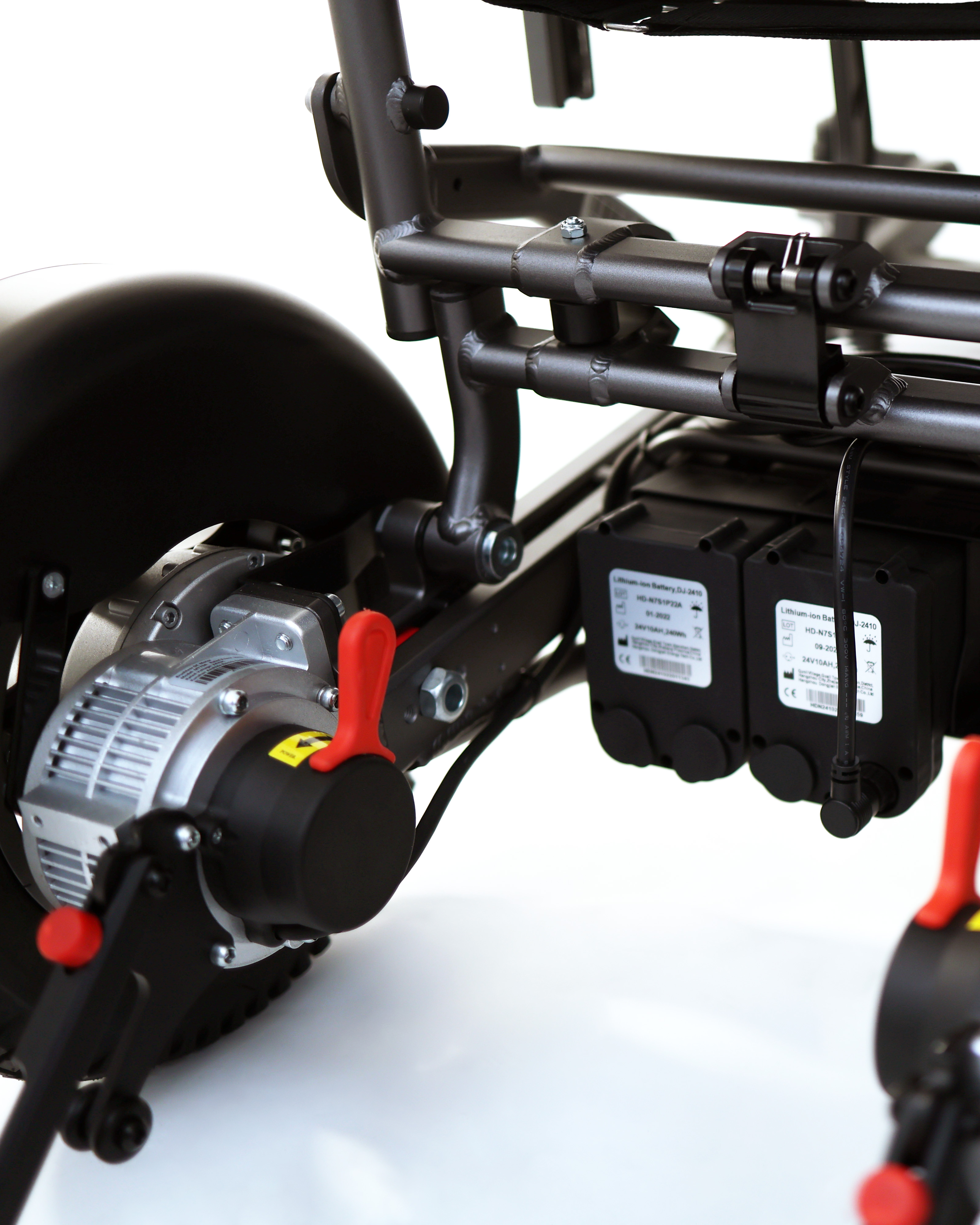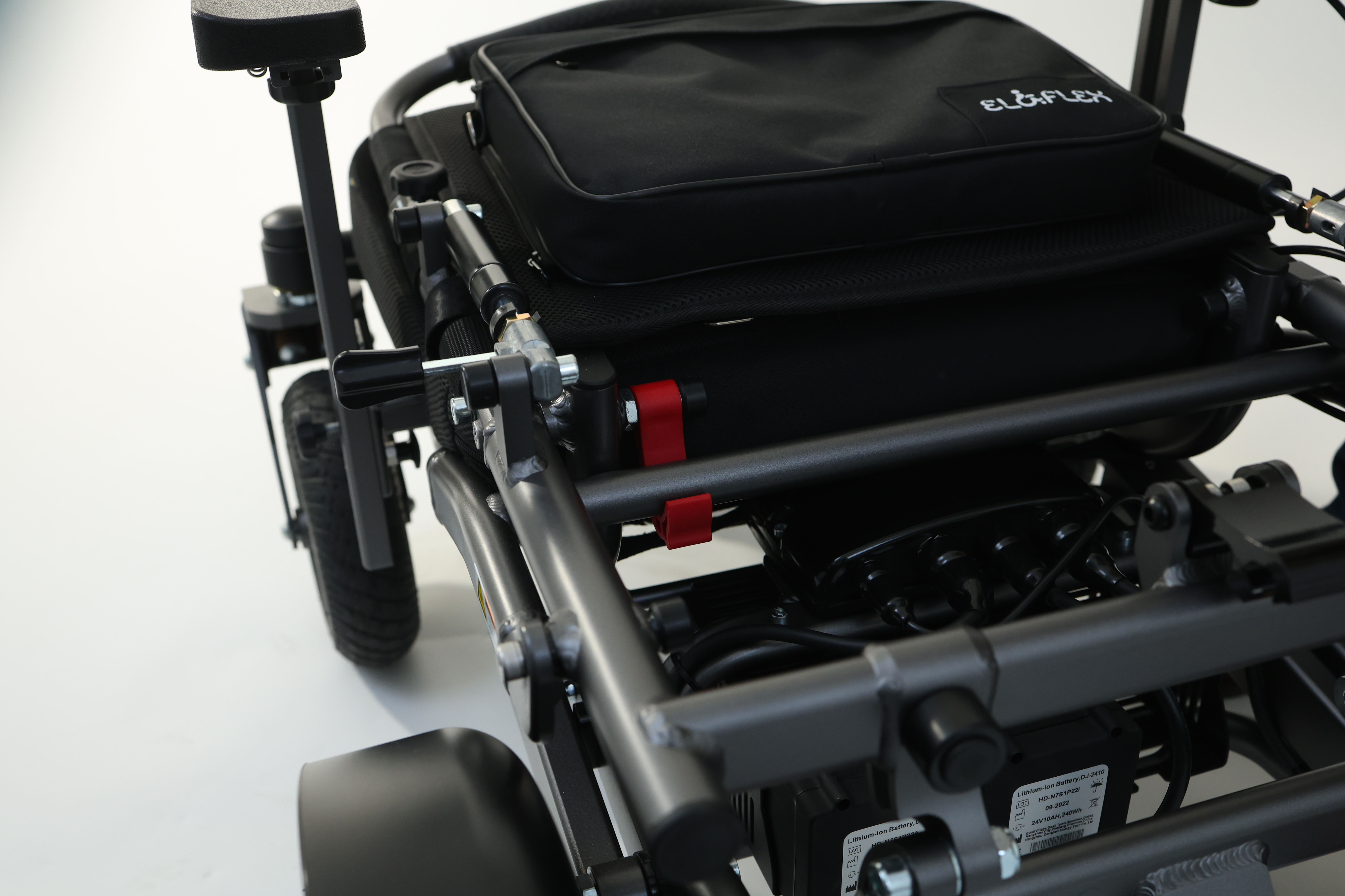 Das Eloflex Modell H2 ist für Nutzer konzipiert, die einen robusten und zuverlässigen Elektrorollstuhl benötigen, der sich leicht transportieren lässt. Der Aluminiumrahmen sorgt für Stabilität und Langlebigkeit, und die teilbare Konstruktion ermöglicht es, den Rollstuhl in zwei Teile zu zerlegen, was das Heben und Handhaben deutlich erleichtert und einen robusten Rahmen erhält.