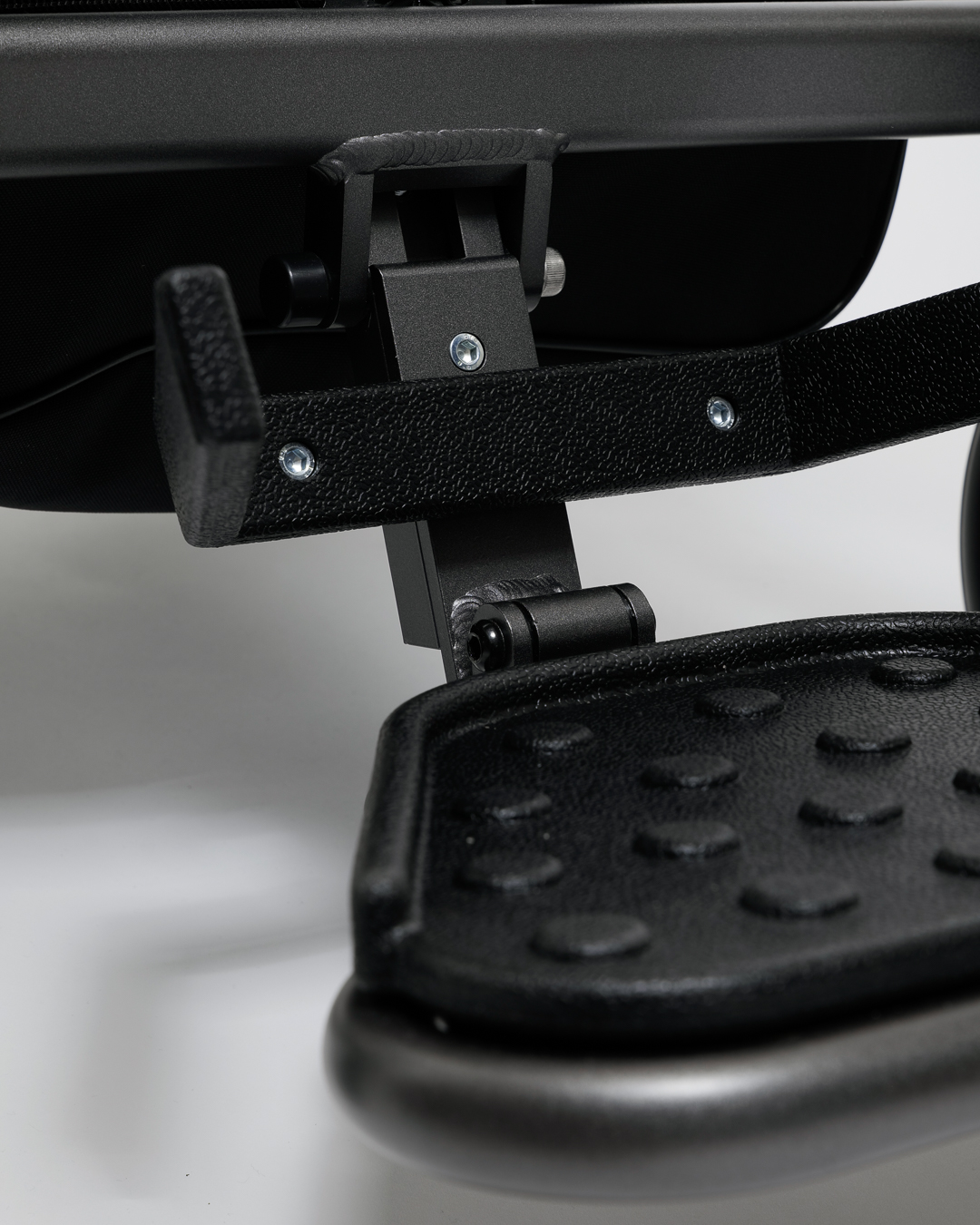 Dieses Modell verfügt über eine smarte Fussstütze, die sowohl vertikal als auch horizontal eingestellt werden kann, was maximalen Komfort gewährleistet. Der Fussstütze lässt sich leicht beiseite klappen, sodass der Einstieg und Ausstieg aus dem Stuhl mühelos erfolgen kann.