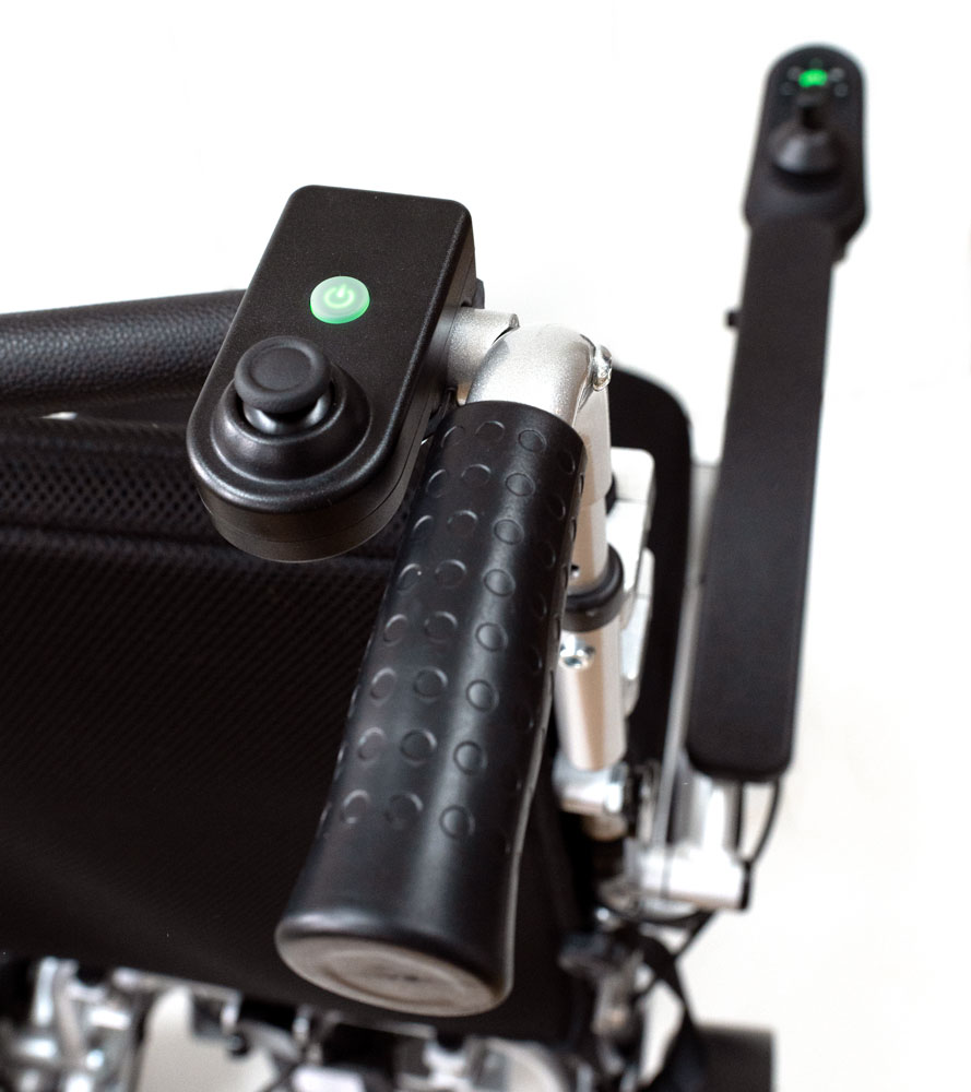 Das A-Modell gibt Ihnen die Flexibilität, das ideale Setup für Ihre Bedürfnisse zu wählen. Zum Beispiel kann der Joystick wie gewohnt auf der Armlehne bleiben, wenn Sie dies bevorzugen, so dass Sie bei Bedarf wieder die Kontrolle übernehmen können. Der neue Joystick verfügt auch über ein Licht, das den Weg vor Ihnen beleuchtet. Diese Funktion kann allerdings nur genutzt werden, wenn Sie ohne die Begleitpersonensteuerung fahren.
